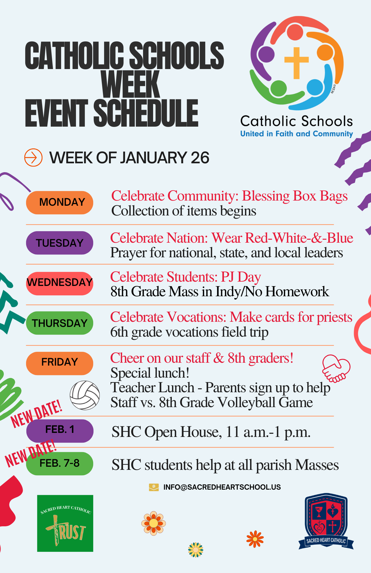 At Sacred Heart Catholic, we know that we can fully trust in Our Lord, Jesus Christ. He is the Lord of our lives and the reason for our school. With God, we can do immeasurably more than we could have ever imagined, as it says in Ephesians 3:20. The 2025-2026 school year is focused on the theme of Trust in God and this verse.